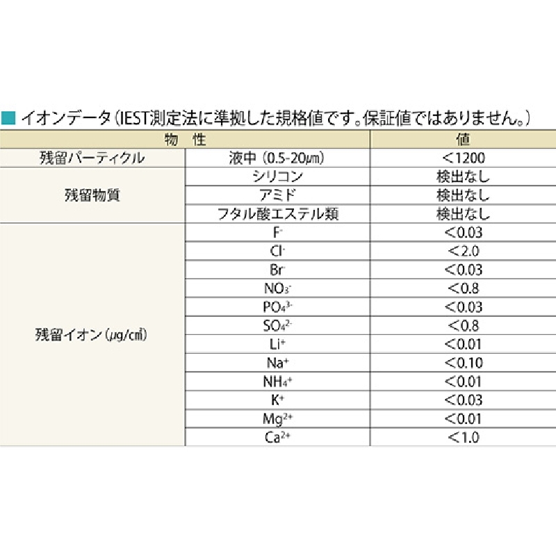 ●【イオンデータ】(IEST測定法に準拠した規格値です。保証値ではありません。)