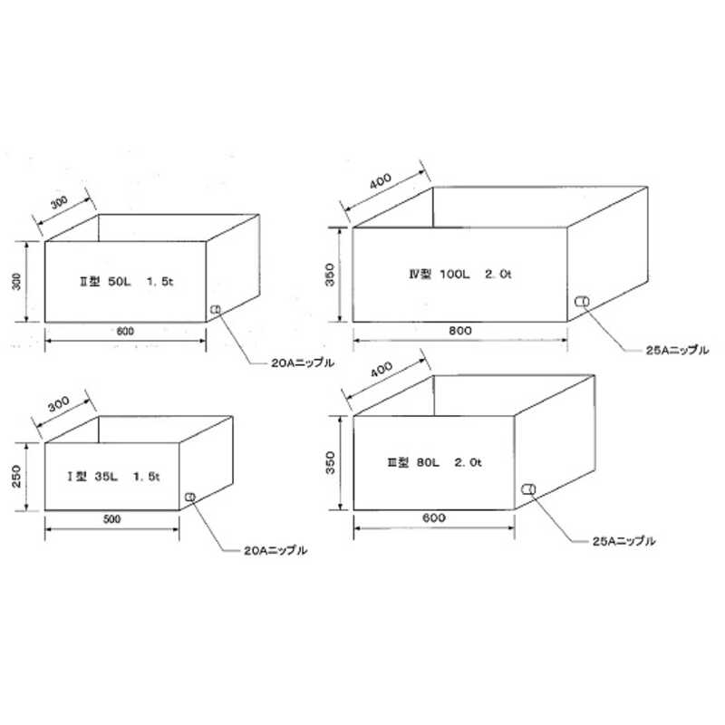 编号 | 外部尺寸(mm) | 内部尺寸(mm) | 容量(L) | 排水阀尺寸 |