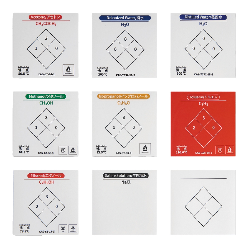 ●通过使用标签,液体的种类一目了然。可以防止使用错误。