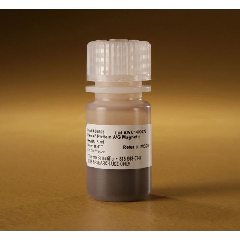 Thermo Scientific Pierce Protein A/G Magnetic Beads are high-performance affinity particles for antibody purification and immunoprecipitation methods using manual or robotic magnetic separators.