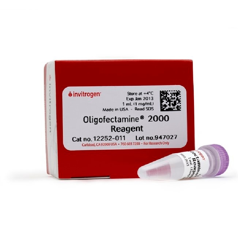 Oligofectamine™ Transfection Reagent is a proprietary formulation for transfecting oligonucleotides and short interfering RNA (siRNA) into eukaryotic cells. Oligofectamine™ Transfection Reagent forms stable complexes with oligos, permitting efficient transfection into eukaryotic cells in a highly specific, yet nontoxic fashion. Oligofectamine™ Reagent is suitable for nuclear and cytoplasmic targets and transfects a wide variety of cell lines including CHO, HEK-293, NIH 3T3, and HeLa.