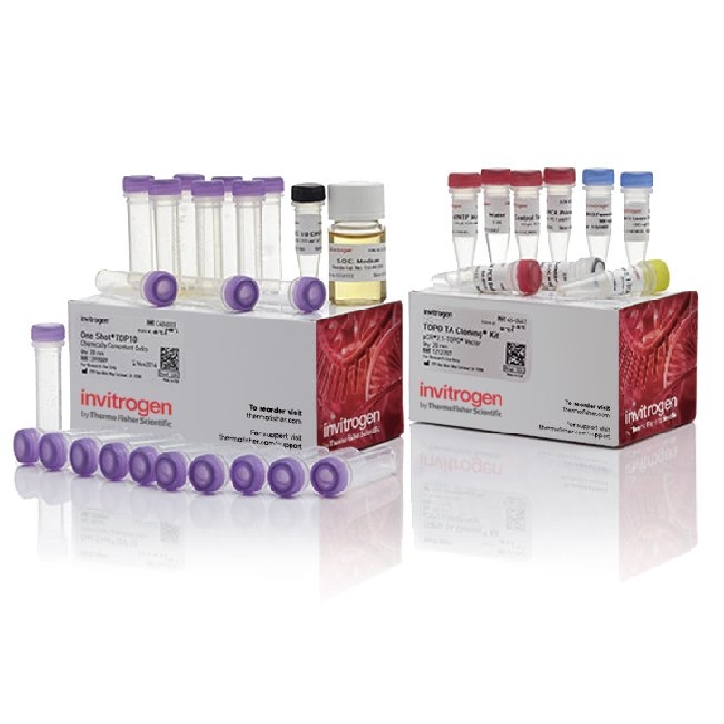 TOPO® TA Cloning® Kits for Subcloning provide a highly efficient, 5-minute, one-step cloning strategy ('TOPO® cloning') for the direct insertion of Taq polymerase–amplified PCR products into a plasmid vector for subcloning. Each kit uses the pCR™ 2.1-TOPO® TA vector with convenient restriction sites for subcloning. The cloning kits are available with a variety of competent cells, or without competent cells, depending upon your needs and budget. Features of the TOPO® TA Cloning® Kits for Subcloning: