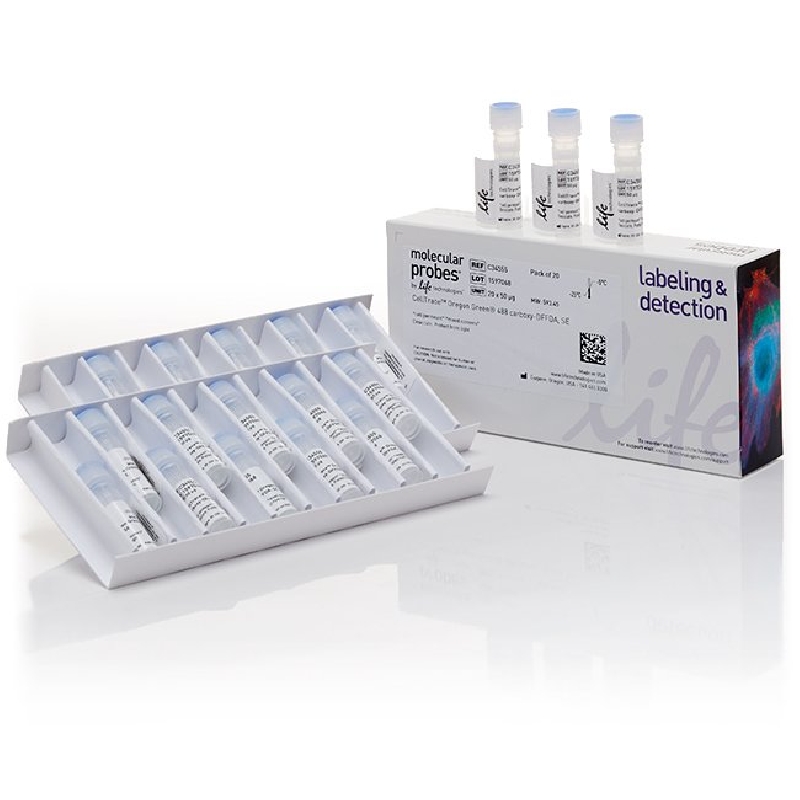 Contains 20 vials of Oregon Green® 488 carboxylic acid diacetate, SE (50 µg/vial).
