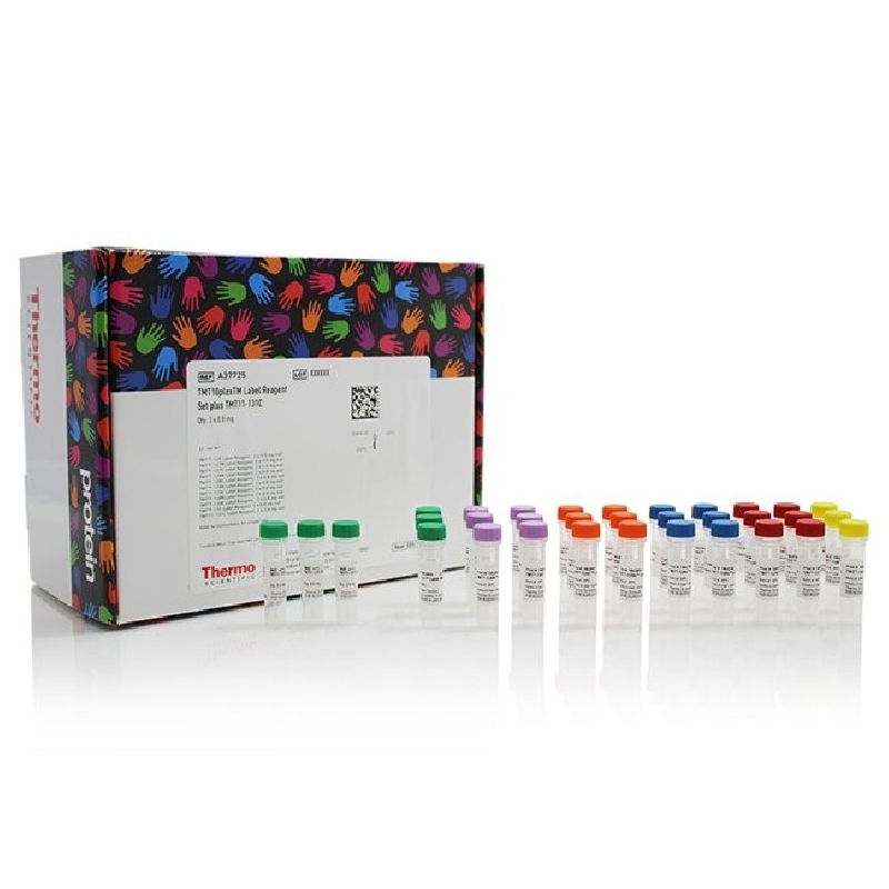 Amine-reactive Thermo Scientific TMT10plex Isobaric Mass Tag Labeling Reagent Set plus TMT11-131C increases sample multiplexing from 10-plex to 11-plex, enabling even greater throughput for protein identification and quantitative analysis by tandem mass spectrometry (MS).