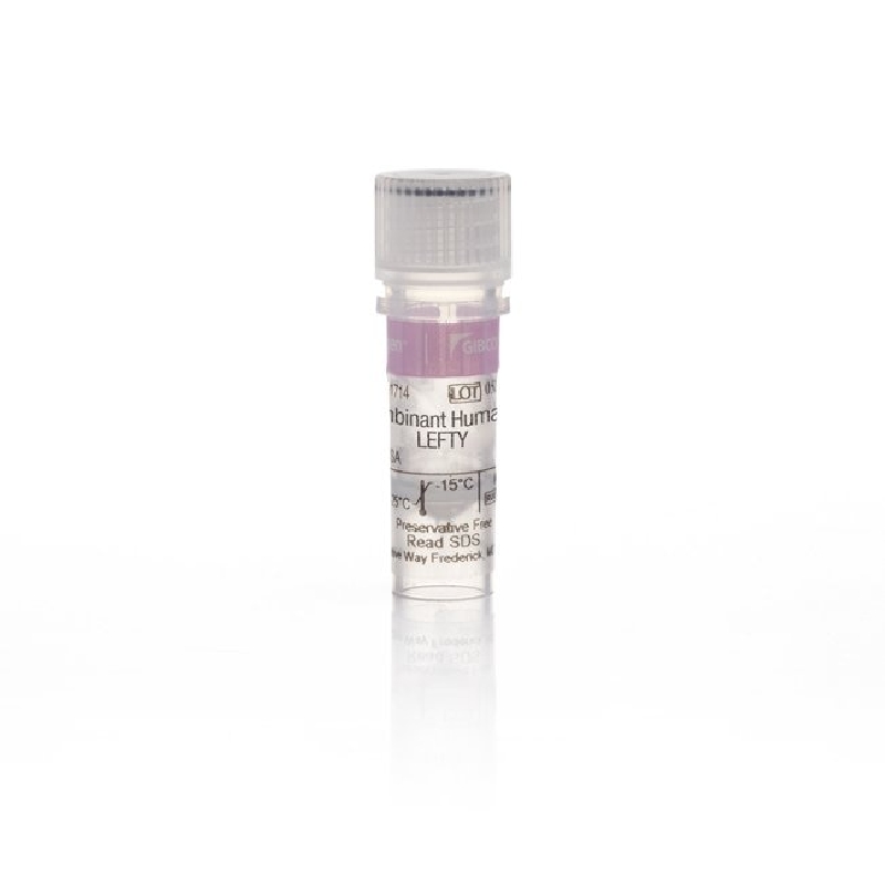 Recombinant Human LEFTY-A is one of our more than 250 available Gibco® recombinant proteins. To help ensure Gibco® growth factors are of the highest quality, each protein is analyzed for purity along with structural homogeneity to get a biologically active protein.