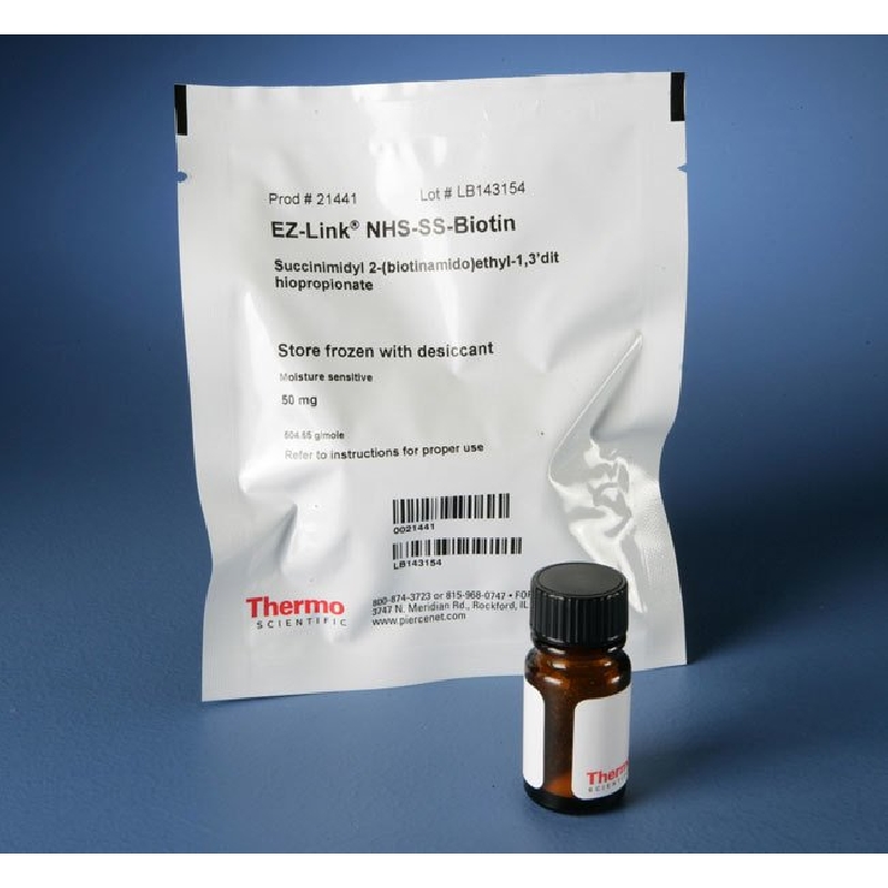 Thermo Scientific EZ-Link NHS-SS-Biotin enables simple and efficient biotinylation of antibodies, proteins and other primary amine-containing molecules, as well as intracellular labeling.