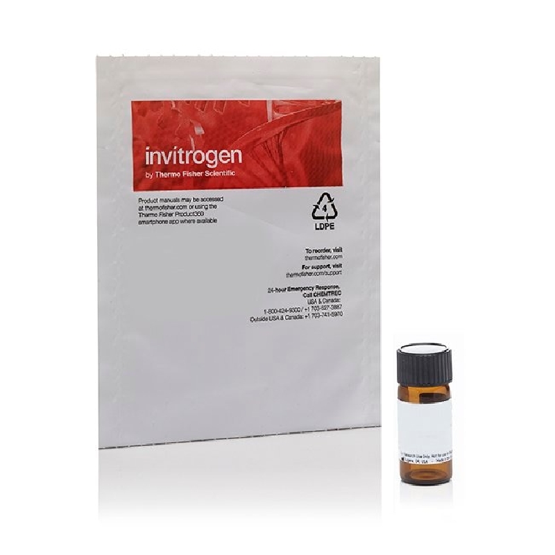 The far-red fluorescent, lipophilic carbocyanine DiD is a longer-wavelength DiI analog. It is an oil at room temperature and weakly fluorescent in water but highly fluorescent and quite photostable when incorporated into membranes. It has an extremely high extinction coefficient and short excited-state lifetimes (~1 nanosecond) in lipid environments. Once applied to cells, the dye diffuses laterally within the plasma membrane.