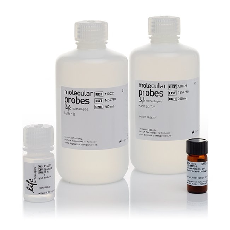 Contains lysis buffer (10 mL), buffer B (200 mL), wash buffer (200 mL), and pHrodo® red E. coli BioParticles® (1 vial, lyophilized product).