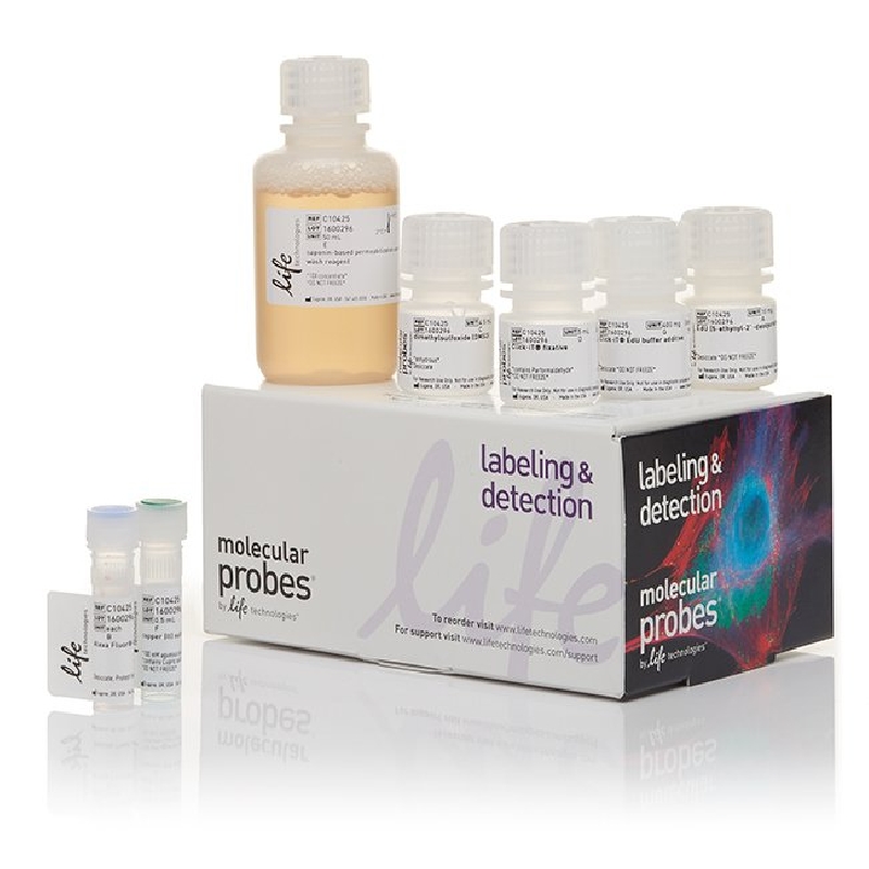 Contains EdU (5-ethynyl-2' -deoxyuridine), Alexa Fluor® 488 azide, anhydrous dimethylsulfoxide (DMSO), Click-iT® fixative, Click-iT® saponin-based permeabilization and wash buffer, copper (II) sulfate,, and Click-iT® EdU buffer additive.