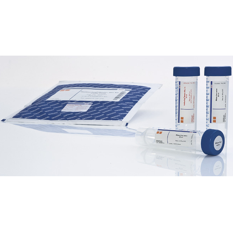 3 x 0.85 ml HotStarTaq Master Mix (contains 250 units HotStarTaq DNA Polymerase, PCR Buffer with 3 mM MgCl2, and 400 µM of each dNTP)and 2 x 1.7 ml RNase-Free Water.